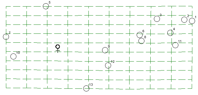 Figure 7a. Relative warps of a thin plate spline comparison of average landmarks of 75 male and 69 female wings of Canton S wild type Drosophila melanogaster. Similar to other strains, the major difference between the male and female Canton S wings is seen to be a small dilation of the distal two-thirds of the wing blade in the male compared to the female.